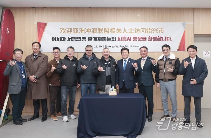 [광흥타임즈 = 조수제 기자] 시흥시는 지난 19일 거북섬 웨이브파크에서 국내 최초로 개최된 ‘2023 WSL 시흥코리아 오픈 국제서핑’ 폐막식에 앞서 아시아서핑연맹(중국서핑협회장) 부회장 저우 창청(Zhou Changcheng)이 이끄는 아시아서핑연맹 관계자들과 함께 간담회를 진행했다.