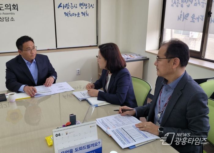 [광흥타임즈 = 조수제 기자] 경기도의회 교육기획위원회 소속 변재석 의원(더불어민주당, 고양1)이 12일 고양상담소에서 경기도교육청 행정관리담당관 관계공무원과 ‘시설관리직 지방공무원 정원 조정 검토’를 위한 정담회를 개최했다.