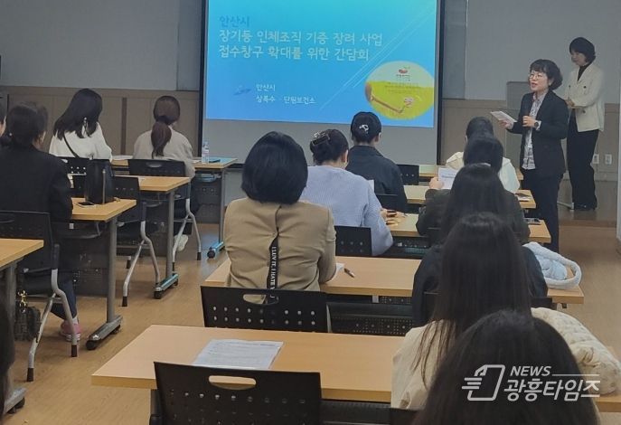 [광흥타임즈 = 조수제 기자] 안산시는 지난 15일 단원보건소 3층 단원문화실에서 동 행정복지센터 등 민원 부서 실무자 28명을 대상으로 안산시 장기 등 인체조직 기증 희망 등록 접수 창구 확대를 위한 간담회를 실시했다고 16일 밝혔다.