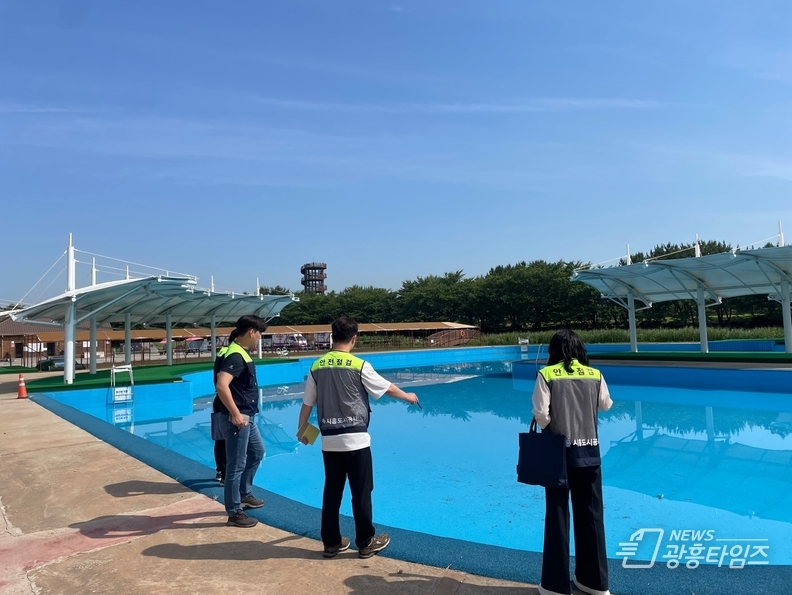 [광흥타임즈 = 조수제 기자] 시흥도시공사는 오는 7월 6일 갯골생태공원·배곧한울공원 해수체험장의 개장을 앞두고, 지난 6월 27일 안전점검을 실시했다.