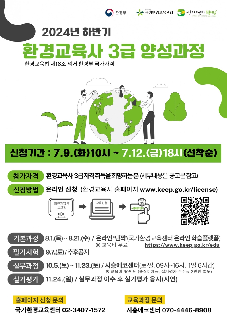 [광흥타임즈 = 조수제 기자] 시흥시는 환경교육 전문가 양성을 위해 7월 9일부터 12일까지 ‘2024년 하반기 환경교육사 3급 양성 과정’ 참여자를 모집한다.