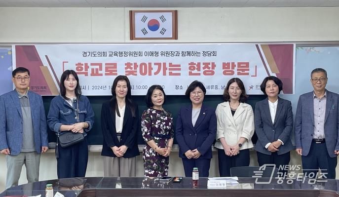 [광흥타임즈 = 조수제 기자] 경기도의회 교육행정위원회 이애형 위원장(국민의힘, 수원10)은 7일 수원 효정초등학교, 세류중학교, 남수원초등학교에서 잇따라 교육환경 개선을 위한 정담회를 개최하여 학부모를 비롯한 학교 및 교육지원청 관계자들과 학교현안사항을 논의하고, 현장을 점검하는 시간을 가졌다.