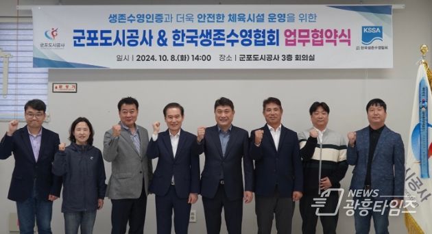 [광흥타임즈 = 조수제 기자] 군포도시공사는 더욱 안전한 체육시설 운영과 서비스 품질 향상을 위하여 한국생존수영협회와 지난 8일 업무협약을 체결했다.