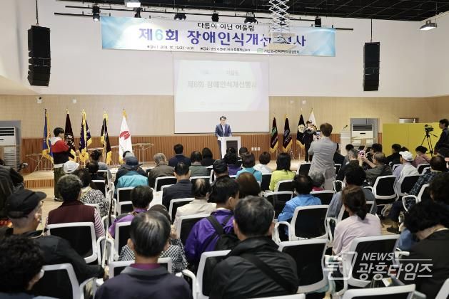 [광흥타임즈 = 조수제 기자] 군포시는 10월 15일 군포시장애인센터에서 군포시장애인단체총연합회 주관으로 200여명의 장애인과 관계자 및 일반시민이 참여한 가운데 2024년 제6회 장애인식개선 행사를 개최하였다.