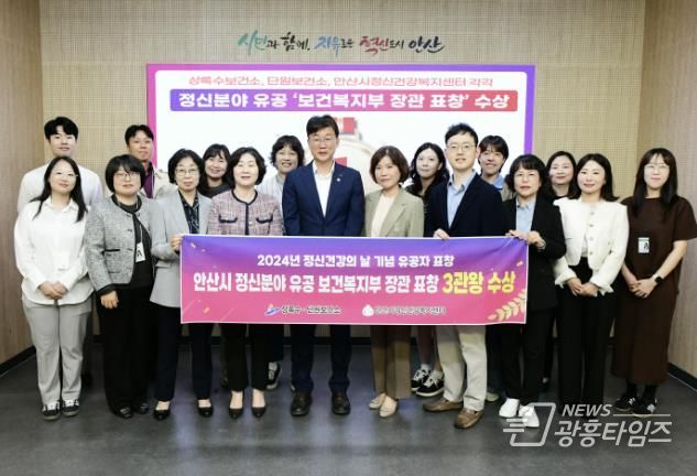 [광흥타임즈 = 조수제 기자] 안산시는 양 보건소(상록수·단원보건소)와 안산시정신건강복지센터가 시민 정신 건강 보호와 자살 예방에 기여한 공로를 인정받아 보건복지부 장관 표창을 수상했다고 15일 밝혔다.