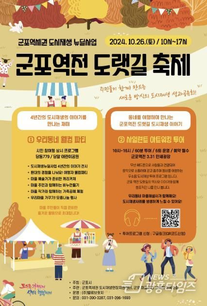 [광흥타임즈 = 조수제 기자] 군포시는 2021년부터 올해까지 진행되는 군포역세권 도시재생뉴딜사업의 마무리 해인 올해 10월 25일~26일 양일간 재생 사업지인 군포역세권 일원에서 도시재생 축제를 개최한다.