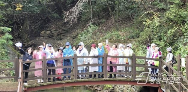 [광흥타임즈 = 조수제 기자] 군포시는 10월 18일에 치매환자 및 가족 30명을 대상으로 의왕시 바라산 휴양림으로 가족 힐링프로그램의 일환인 「행복충전 가을 야외 나들이」를 다녀왔다.
