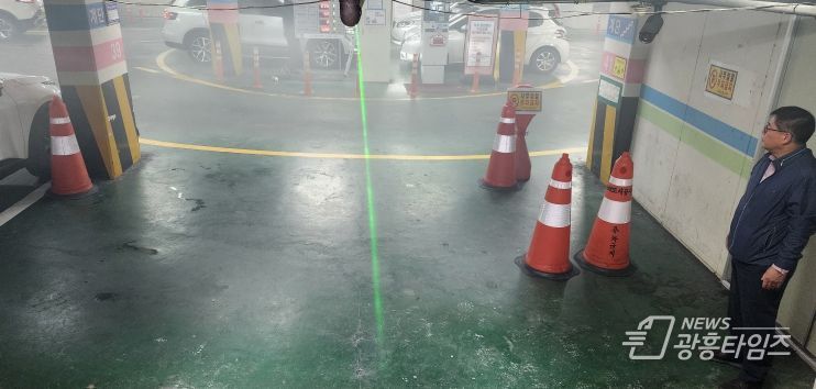 [광흥타임즈 = 조수제 기자] 군포도시공사는 지난 23일 공영주차장 화재 시 골든타임 내 이용고객의 신속한 대피를 위한 ‘레이저 피난 유도기’를 설치했다.