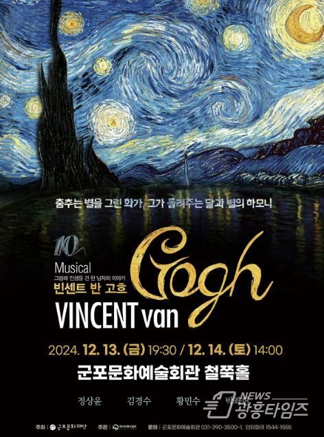 [광흥타임즈 = 조수제 기자] 군포문화재단은 화가 빈센트 반 고흐의 짧고도 강렬한 인생을 그린 뮤지컬 ‘빈센트 반 고흐' 공연을 내달 13일과 14일에 양일간 군포문화예술회관 철쭉홀에서 진행한다.