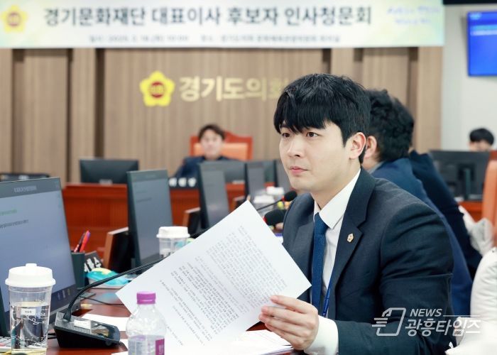 [광흥타임즈 = 조수제 기자] 경기도의회 문화체육관광위원회 정동혁 의원(더불어민주당, 고양3)은 지난 18일과 19일 열린 경기문화재단 대표이사 및 경기아트센터 사장 후보자 인사청문회에서 직무수행 능력을 검증하며 도민이 체감할 수 있는 실질적인 문화예술 사업의 중요성을 강조했다.