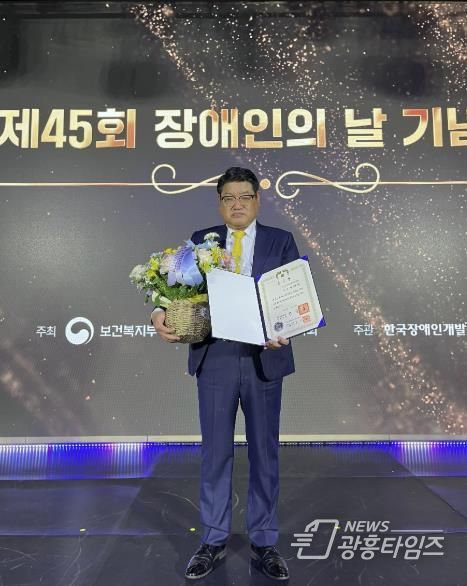 [광흥타임즈 = 조수제 기자] (사)경기도장애인정보화협회 군포시지회장이면서 (사)경기도장애인정보화협회 회장인 이세항 회장이 정부로부터 장애인 정보격차해소 및 일자리 창출에 기여한 공로를 인정받아 ‘제45회 장애인의 날’을 맞아 대통령표창을 수상했다.
