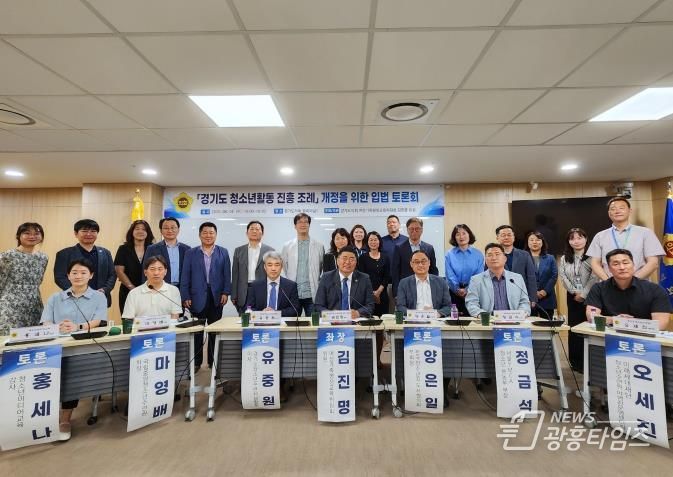 [광흥타임즈 = 조수제 기자] 경기도의회 여성가족평생교육위원회 김진명 의원(더불어민주당, 성남6)은 6월 4일 경기도의회 중회의실 1에서 ‘경기도 청소년활동 진흥 조례 개정’을 위한 입법 토론회를 개최했다.