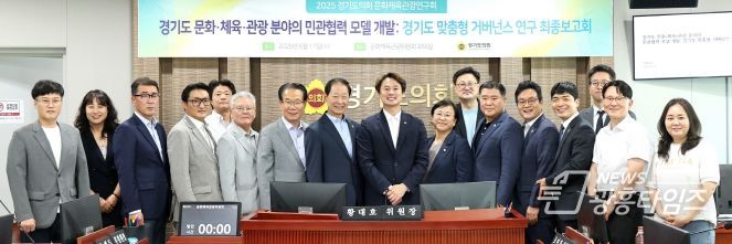 [광흥타임즈 = 조수제 기자] 경기도의회 문화체육관광연구회(회장 황대호 의원)가 11일 문화체육관광위원회 회의실에서 『경기도 문화·체육·관광 분야의 민관협력 모델 개발: 경기도 맞춤형 거버넌스 연구』 정책연구용역 최종보고회를 개최했다.