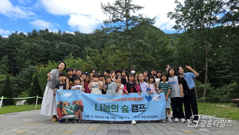 [광흥타임즈 = 조수제 기자] 시흥시는 아이누리(공립형)지역아동센터가 9월 18일부터 19일까지 1박 2일 일정으로 강원도 춘천 국립 숲체원에서 ‘2025 나눔의 숲 캠프’를 개최했다고 밝혔다.