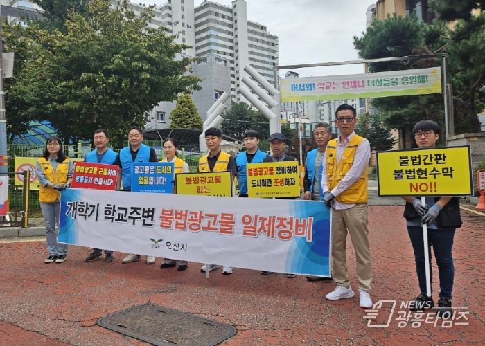 [광흥타임즈 = 조수제 기자] 오산시는 2025년 9월 18일, 개학기를 맞아 학생들의 안전한 통학 환경을 확보하고 쾌적한 학습 공간을 제공하기 위해 학교 주변의 불법 현수막에 대한 일제 정비를 실시했다고 밝혔다.
