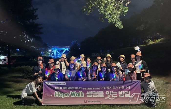 [광흥타임즈 = 조수제 기자] 시흥자살예방센터는 ‘세계 자살예방의 날’을 기념해 생명지킴이단과 함께 9월 16일부터 18일까지 3일간 ‘생명의 빛을 밝히고 함께 걸어가자’는 의미를 담아 ‘희망 걷기(Hope Walk), 생명을 잇는 밤길’이라는 구호로 자살 예방 인식 캠페인을 진행했다.