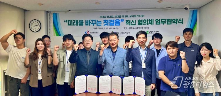 [광흥타임즈 = 조수제 기자] 22일 안양도시공사에 따르면, 지난 19일 의왕도시공사 3층 회의실에서 경기남부 3개 도시공사(안양·군포·의왕)는 공동으로 청년 혁신협의체를 발족했다고 밝혔다. 이번 협의체는 젊은 세대의 창의적 아이디어를 공사 경영에 반영하고, 조직의 혁신 역량을 강화하기 위한 새로운 참여기구다.