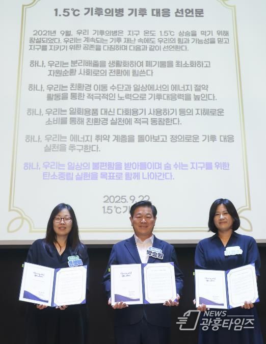 박승원 광명시장은 “기후위기는 더 이상 특별한 사건이 아니라 우리의 일상”이라며 “생활 속 작은 실천을 쌓아가는 기후의병의 발걸음이야말로 광명의 자부심이자 탄소중립 사회로 나아가는 강력한 원동력”이라고 말했다.