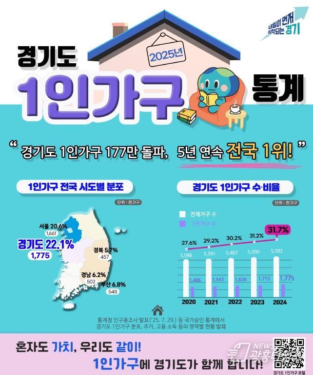 경기도는 이러한 내용을 담은 ‘2025 경기도 1인가구 통계’를 24일 발표했다.