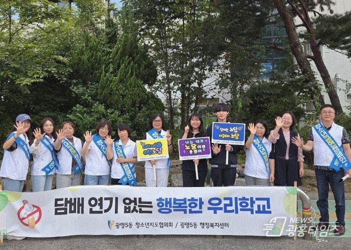 [광흥타임즈 = 조수제 기자] 광명5동 청소년지도협의회는 지난 23일 광남중학교에서 위원과 광명5동 주민센터 직원 등 13명이 참석한 가운데 청소년 금연 캠페인을 펼쳤다.