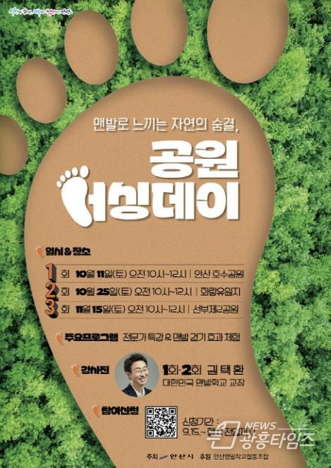 행사 참가비는 무료이며, 참여를 원하는 시민은 안산시청 누리집 ‘시정소식-새소식’란에 게시된 참여신청 QR코드로 접속해 사전 신청하면 된다. 자세한 사항은 안산시청 공원과로 전화 문의하면 안내받을 수 있다.