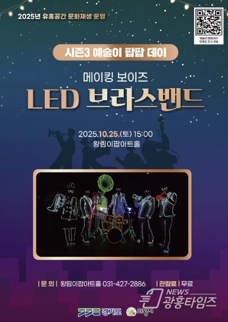 [광흥타임즈 = 구민지 기자] 의왕시는 오는 10월 25일 오후 3시, 왕림이팝아트홀(의왕시 왕곡로 74)에서 금관악기 앙상블과 첨단 엘이디(LED) 조명 기술을 결합한 융복합 공연‘엘이디(LED) 브라스밴드’를 선보인다고 밝혔다.