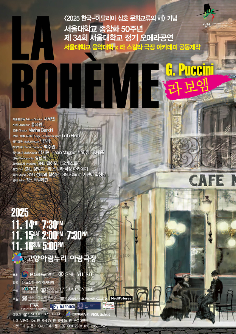 [광흥타임즈 = 조수제 기자] 시흥시와 서울대 교육협력사업인 ‘스누콤 합창단’이 ‘2025 한국-이탈리아 상호 문화교류의 해’를 기념해 서울대 음악대학과 라 스칼라 극장 아카데미가 공동으로 제작하는 오페라 ‘라 보엠(La Boheme)’에 특별출연한다.