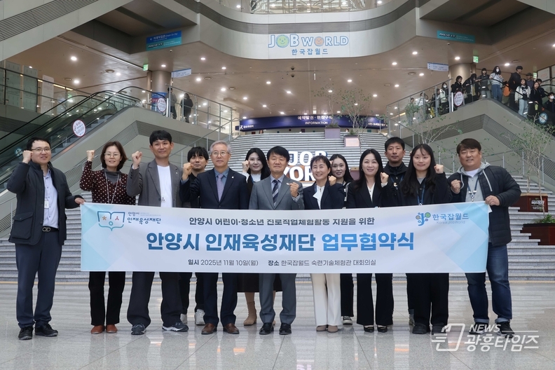 [광흥타임즈 = 조수제 기자] 안양시 인재육성재단은 10일 한국잡월드 숙련기술체험관 대회의실에서 직업진로체험 대표기관인 한국잡월드와 업무협약을 체결했다고 11일 밝혔다.