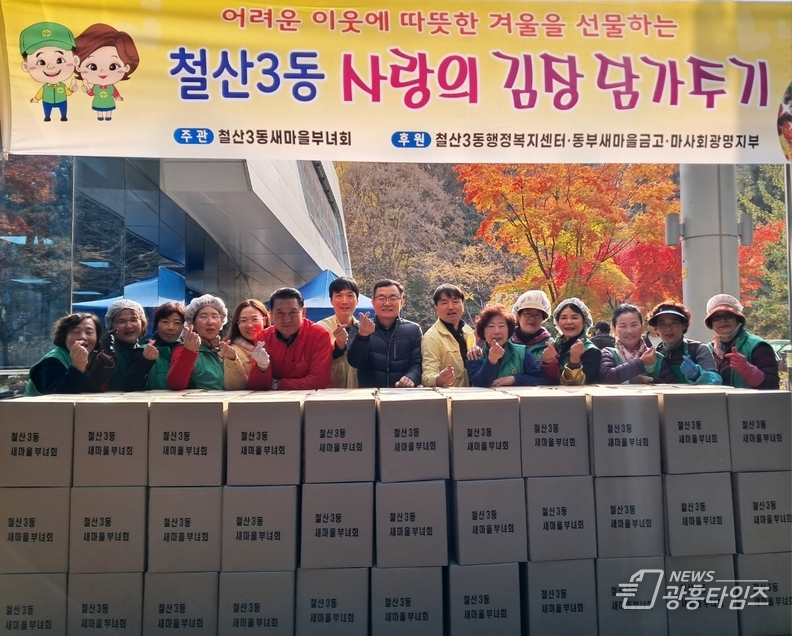 [광흥타임즈 = 조수제 기자] 광명시 철산3동 새마을부녀회는 지난 19일부터 20일까지 이틀간 철산3동 행정복지센터 앞마당에서 ‘사랑의 김장 나누기’ 행사를 열었다.