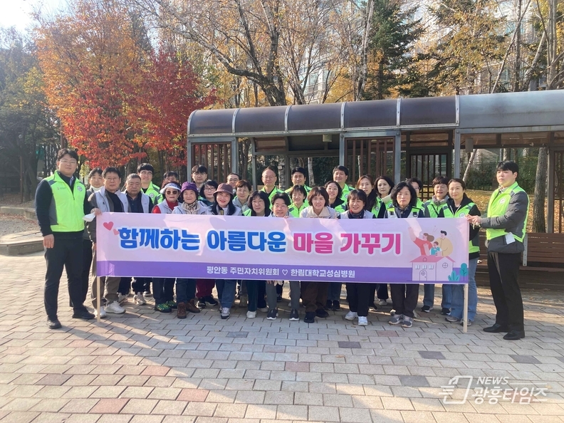[광흥타임즈 = 조수제 기자] 안양시 동안구 평안동 주민자치위원회와 한림대학교성심병원은 지난 22일 평안동 관내 주요 산책길을 돌며 낙엽쓸기 등 합동 환경정화 활동을 실시했다.