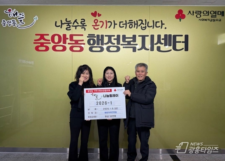 이번 기탁은 중앙동에서 추진 중인 ‘해뜰릴레이’의 첫 번째 나눔으로, ‘해뜰릴레이’는 후원금과 후원품 기부자를 중심으로 릴레이 형식의 나눔을 이어가며 기부 문화 확산과 지속적인 이웃사랑 실천을 도모하는 사업이다. 특히 이번 후원은 2026년 병오년 새해를 여는 첫 해뜰릴레이로, 지역사회에 따뜻한 나눔의 의미를 더했다.