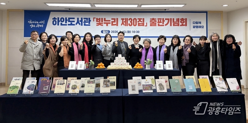 [광흥타임즈 = 조수제 기자] 광명시 하안도서관은 13일 도서관 강당에서 지역 대표 독서 모임인 ‘빛누리 독서회’의 서른 번째 문집 발간을 축하하는 출판기념회를 열었다.