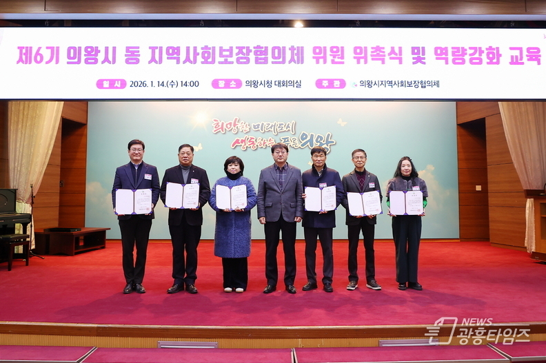 [광흥타임즈 = 구민지 기자] 의왕시는 1월 14일 오후 2시 시청 대회의실에서 제6기 동지역사회보장협의체 위원 위촉식을 개최했다.