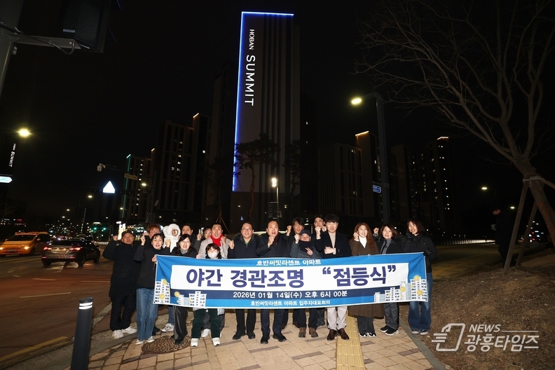 이번 점등식은 기존 옥탑부 조명을 보완해 새롭게 설치한 ‘라인 경관조명’의 본격적인 가동을 알리는 행사로, 아파트 외벽을 따라 조성된 경관조명이 점등되며 단지 전반의 야간 경관이 한층 밝고 쾌적하게 개선됐다.