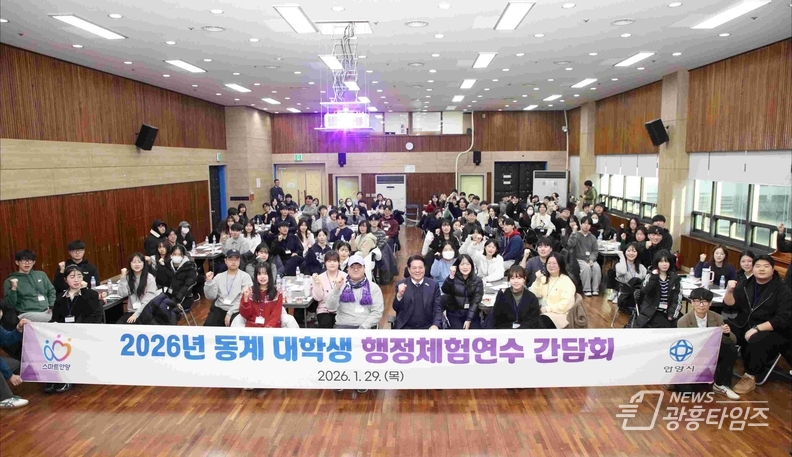 [광흥타임즈 = 조수제 기자] 안양시는 지난 1월 29일 동안구청 대회의실에서 ‘2026년 동계 대학생 행정체험연수’ 참여자들과 소통 간담회를 열고, 4주간의 연수 과정을 마무리했다고 3일 밝혔다.
