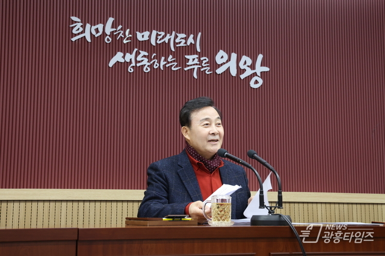 [광흥타임즈 = 구민지 기자] 김성제 의왕시장이 2월 2일 건강한 모습으로 시정에 공식 복귀한 데 이어, 3일 시청 중회의실에서 확대 간부회의를 직접 주재하며 현안 챙기기에 나섰다.