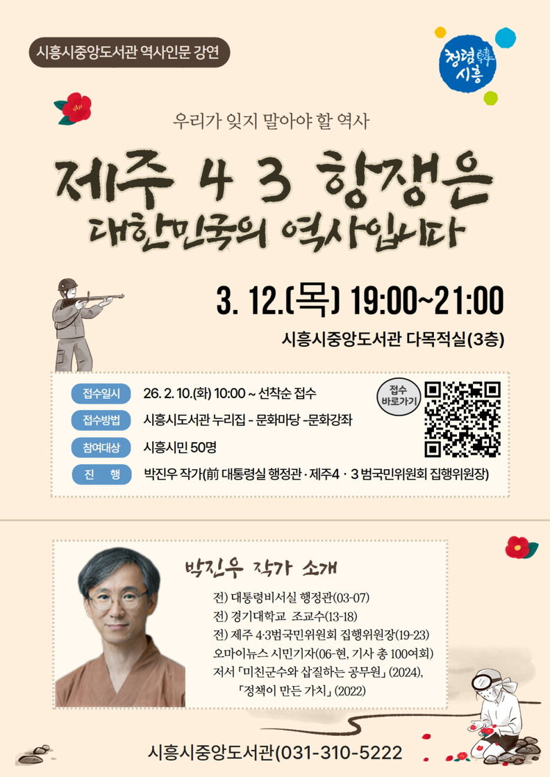 전행주 시흥시중앙도서관장은 “이번 강연이 과거를 올바르게 이해하고 현재를 성찰하는 인문적 공론의 장이 되길 바란다”라고 말했다.
