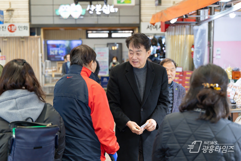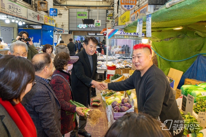 [광흥타임즈 = 조수제 기자] 하은호 군포시장은 설 명절을 앞둔 지난 5일 관내 전통시장을 찾아 장보기 행사를 진행하며 시장 상인들을 격려했다.