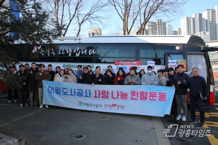 [광흥타임즈 = 구민지 기자] 의왕도시공사가 2월 9일, 본사 사옥 인근 헌혈버스에서 ‘2026년 제1차‘따뜻한 사랑 나눔 헌혈 운동’을 실시했다.
