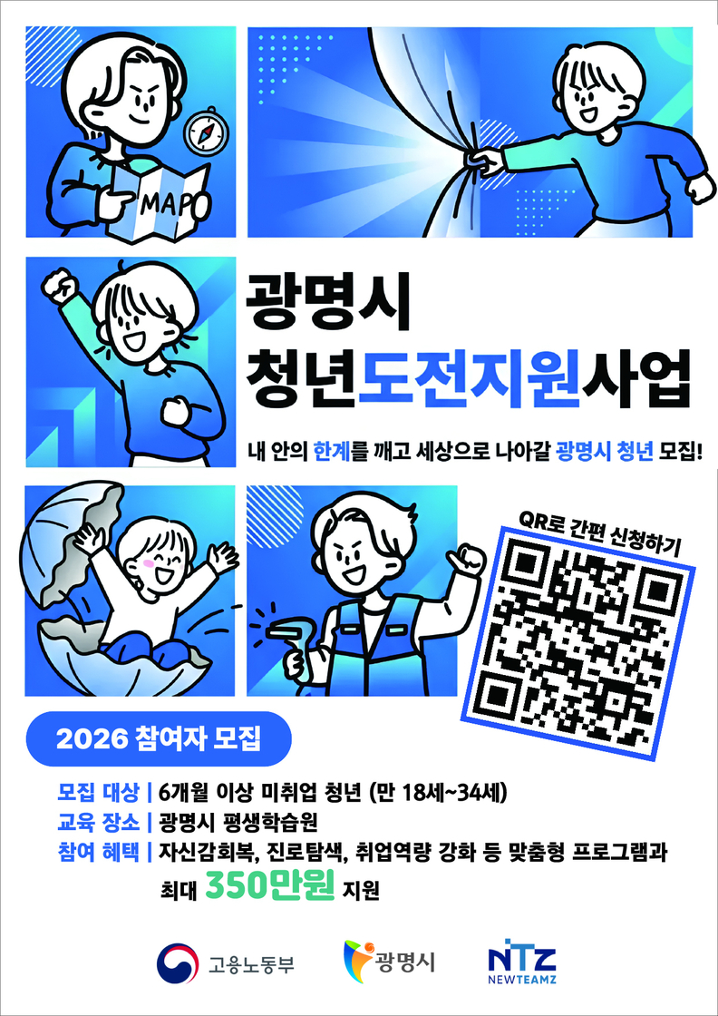 [광흥타임즈 = 조수제 기자] 광명시가 구직에 어려움을 겪는 청년들의 사회 진출을 돕기 위해 오는 22일까지 ‘2026년 청년도전지원사업’ 참여자 78명을 모집한다.