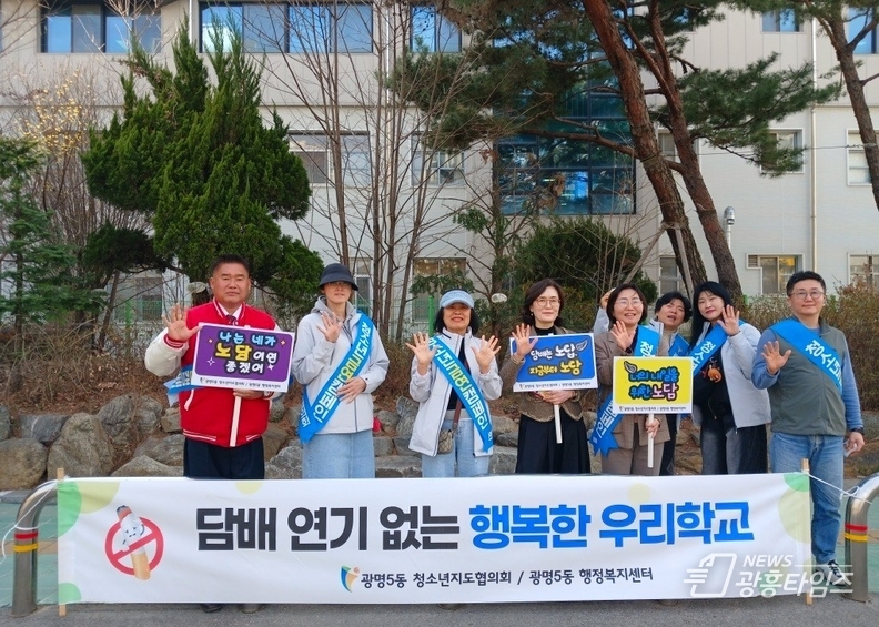 [광흥타임즈 = 조수제 기자] 광명시 광명5동 청소년지도협의회는 지난 23일 광남중학교 정문 일대에서 청소년들의 건강한 성장을 돕기 위한 ‘청소년 금연 캠페인’을 실시했다.