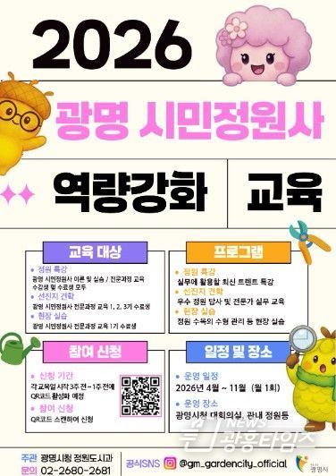 신은철 정원도시과장은 “시민정원사는 정원도시 광명 미래를 일구는 핵심 동력”이라며 “이번 교육으로 시민들이 전문가 역량을 현장에서 마음껏 펼칠 수 있도록 실무 중심 지원을 강화하고, 광명시 전역에 고품격 정원문화를 뿌리내리겠다”고 밝혔다.
