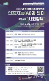 경기도여성가족재단, 20일 2차 경기여성가족미래포럼…'인공지능과 사회정책'