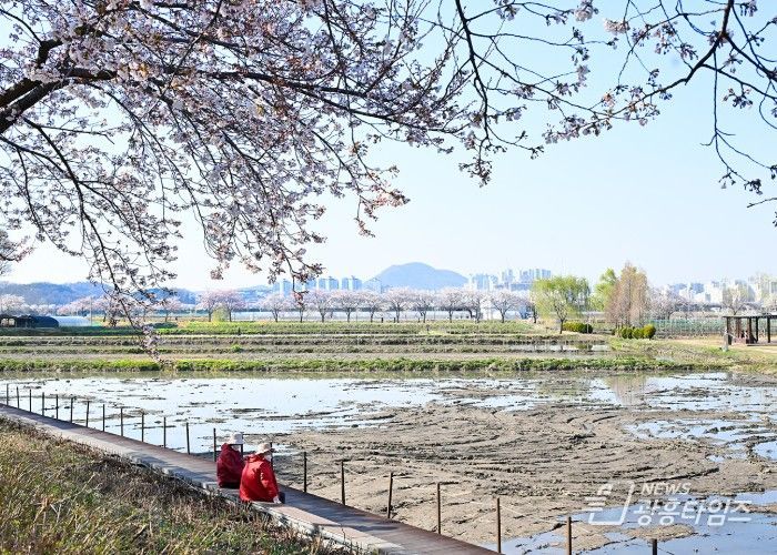 시흥시 소래산 자락에 있는 ABC행복학습타운에는 바람 따라 흩날리는 꽃잎이 ‘벚꽃비’처럼 내려앉고, 연꽃테마파크의 벚꽃길에는 새순이 돋아난 나무들이 어우러지며 봄날의 생동감을 더한다. 물왕호수에는 잔잔한 물결 위로 꽃잎이 스치며 고즈넉한 봄날의 여운을 남기고 있다.