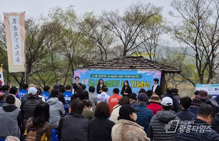 [광흥타임즈 = 조수제 기자] 시흥시는 법정기념일인 ‘도시농업의 날(4월 11일)’을 맞아 시민공동체 활성화를 위해 ‘2026년 도시농업의 날 기념식 및 시민행복텃밭 개장 행사’를 지난 4월 11일 함줄 도시농업공원에서 개최했다.