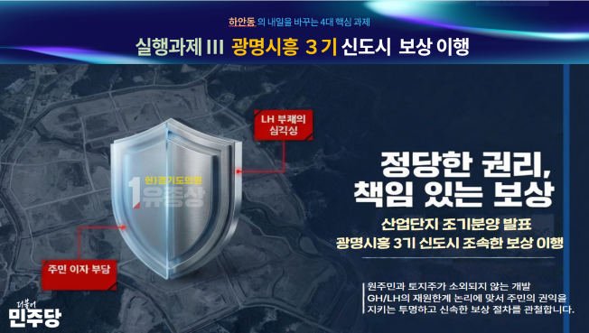 광명·시흥 3기 신도시 개발과 관련해서는 신속하고 공정한 보상 체계 구축을 약속했다.