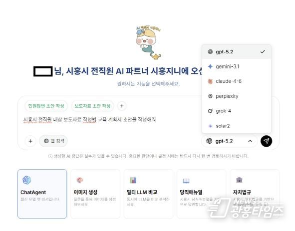 [광흥타임즈 = 조수제 기자] 최근 시흥시 평생학습과 공무원 박씨는 보고서 작성에 소요되는 시간이 크게 줄었다. 통계자료 정리나 기관 대상 발표 자료를 만드는 데에도 자신감이 붙었다. 지난 3월 내부 행정망에 도입된 생성형 인공지능 통합 시스템 ‘시흥지니’ 덕이다.