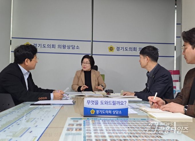 [광흥타임즈 = 조수제 기자] 경기도의회 김옥순 의원(더불어민주당, 비례)은 19일 도의회 의왕상담소에서 경기도 시장상권진흥원 대외협력관 3명과 경기도 소상공인 환경개선 사업 관련 정담회를 가졌다.