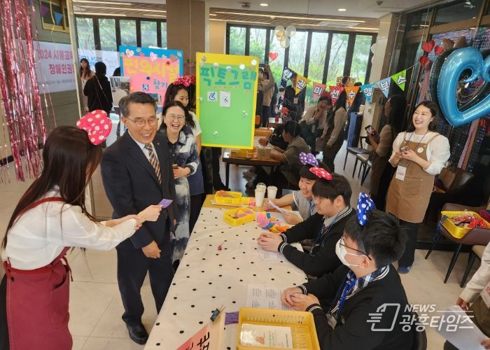 [광흥타임즈 = 조수제 기자] 경기도시흥교육지원청은 장애인의 날을 기념하며 2024년 4월 19일 시흥교육청 내 2층 싱싱카페에서 제2회 청내 직원대상 장애인권 및 장애인식개선 '싱싱카페에 온 걸 환영해' 행사를 운영했다.