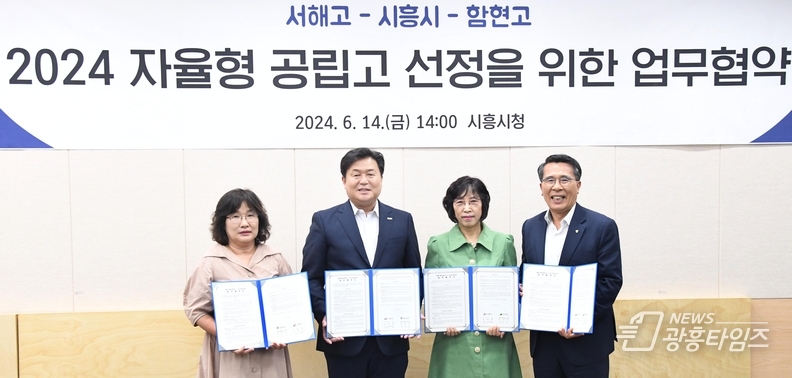 이날 시청 다슬방에서 열린 협약식에는 임병택 시흥시장과 이상기 시흥교육지원청 교육장, 임정순 서해고 교장, 박경미 함현고 교장, 각 기관 관계자가 참석했다.